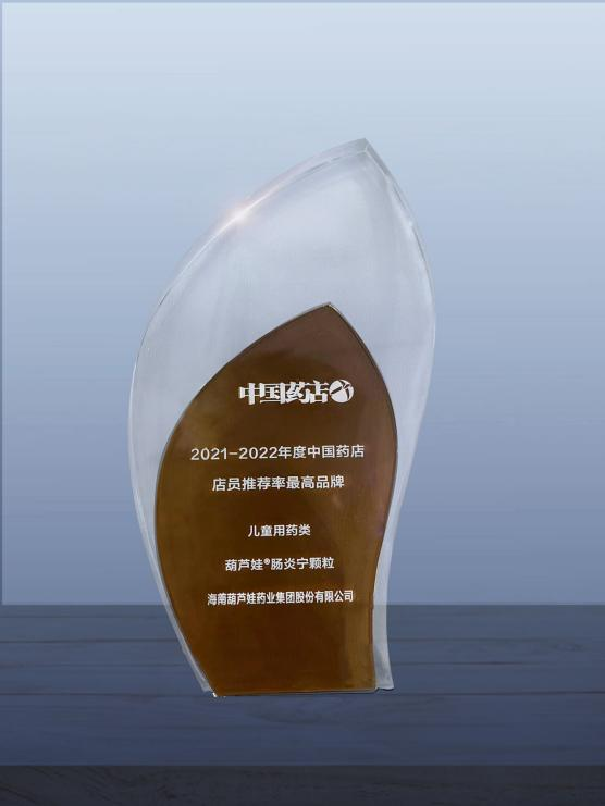 近日,由《中国药店》杂志社举办的“2022~2023年度中国药店发展报告暨中国药店价值榜发布会”在青岛举行,会上发布了“2021-2022年度中国药店店员推荐率最高品牌”奖,尊龙凯时药业两大明星产品尊龙凯时牌小儿肺热咳喘颗粒(4g)、尊龙凯时牌肠炎宁颗粒(2g)双双上榜。